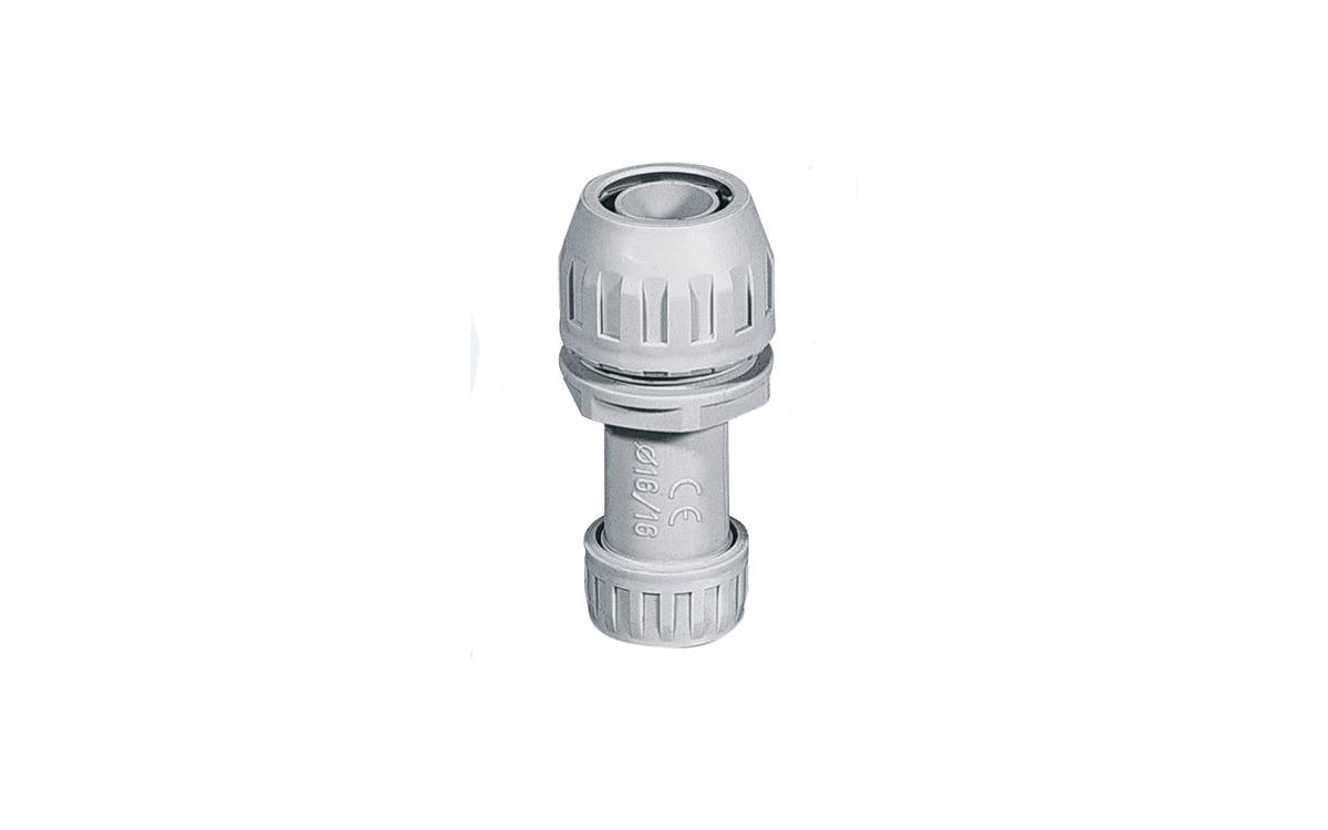 "ELETTROCANALI" raccordi a tenuta stagna IP67, TUBO - GUAINA ad innesto rapido, grigio RAL 7035 di uguale dimensione.